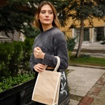 Material: 100% Jute(Burlap) Fabric Size: 9"W x 11"H x 4"D Imprint Area: 6"W x 6"H Package Quantity: 6 pcs Case Quantity: 60 pcs